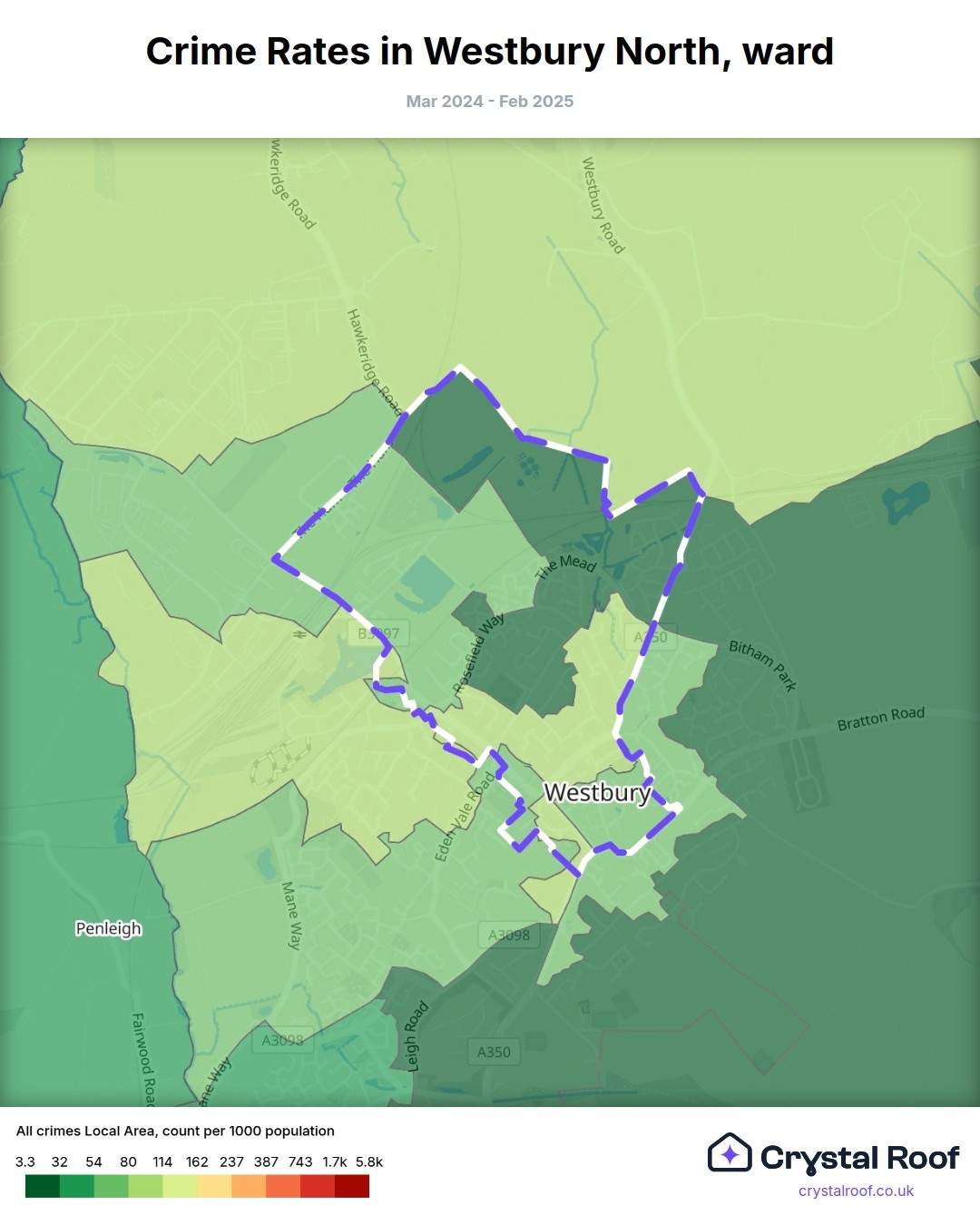 Westbury North, (ward) includes areas with the following crime ratings (see map):