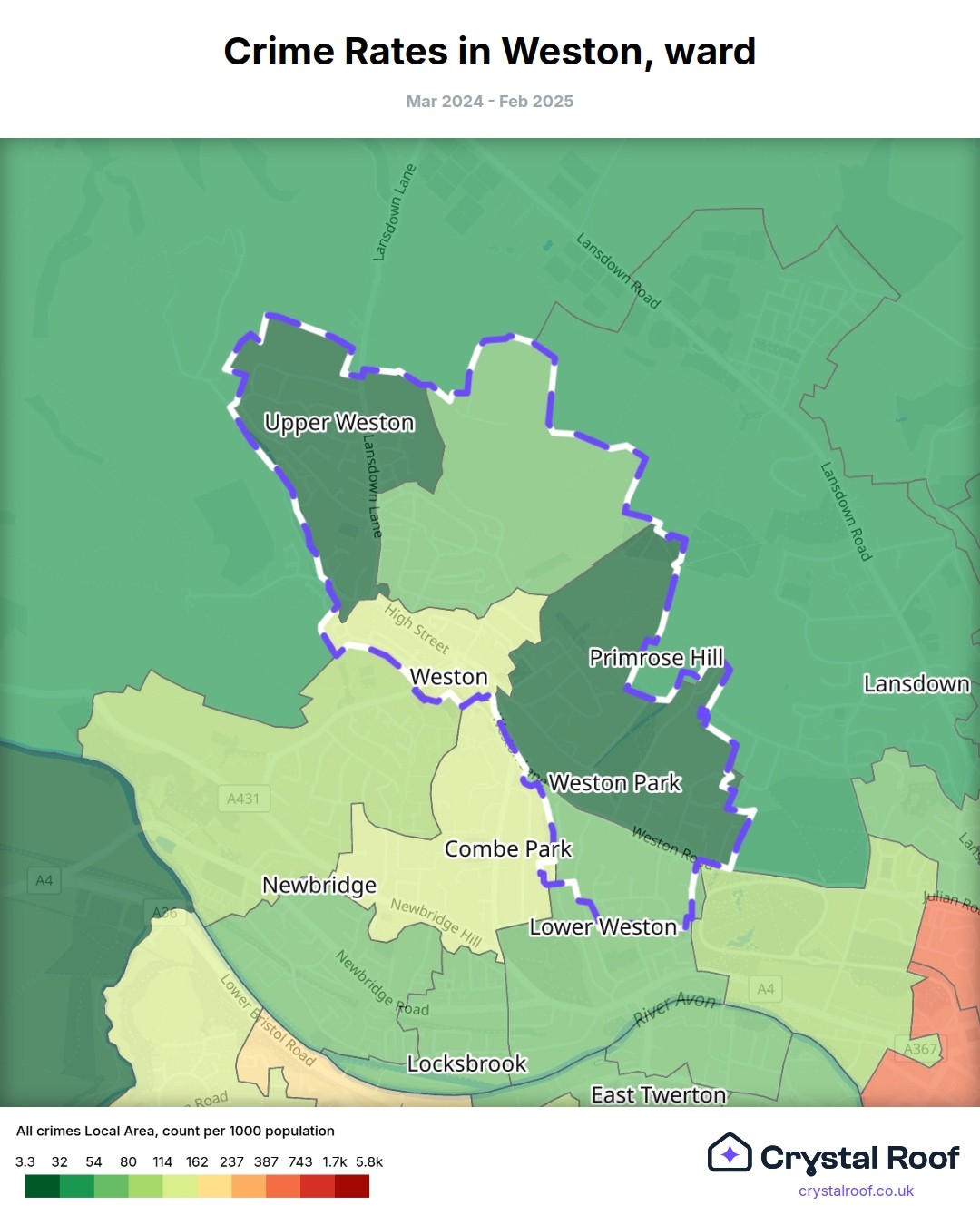 Weston, (ward) includes areas with the following crime ratings (see map):