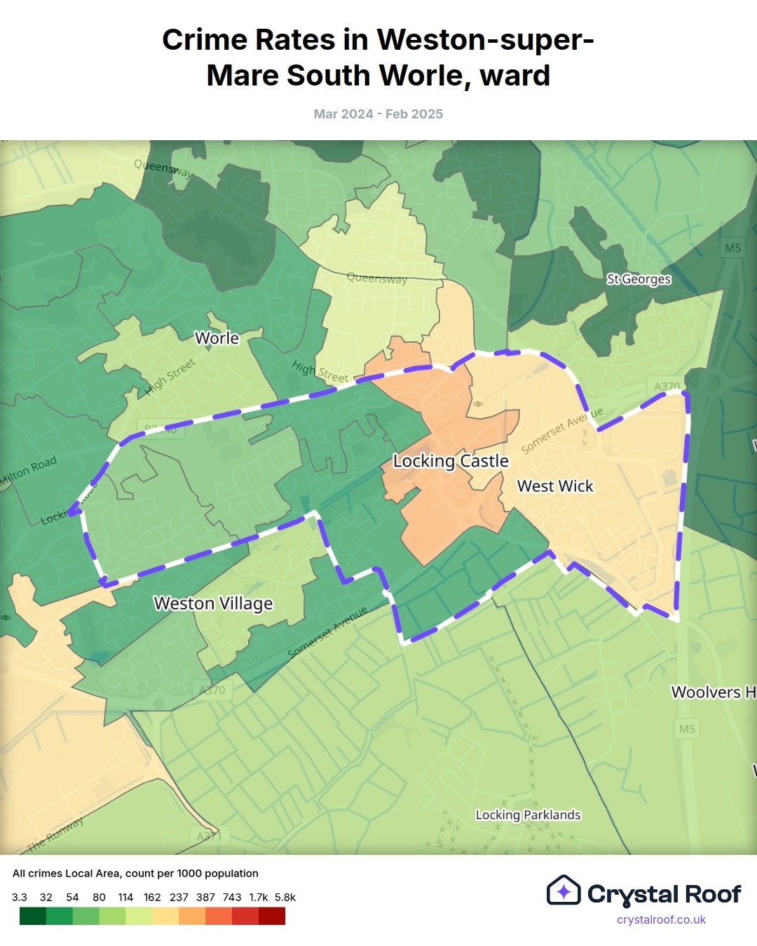 Weston-super-Mare South Worle, (ward) includes areas with the following crime ratings (see map):