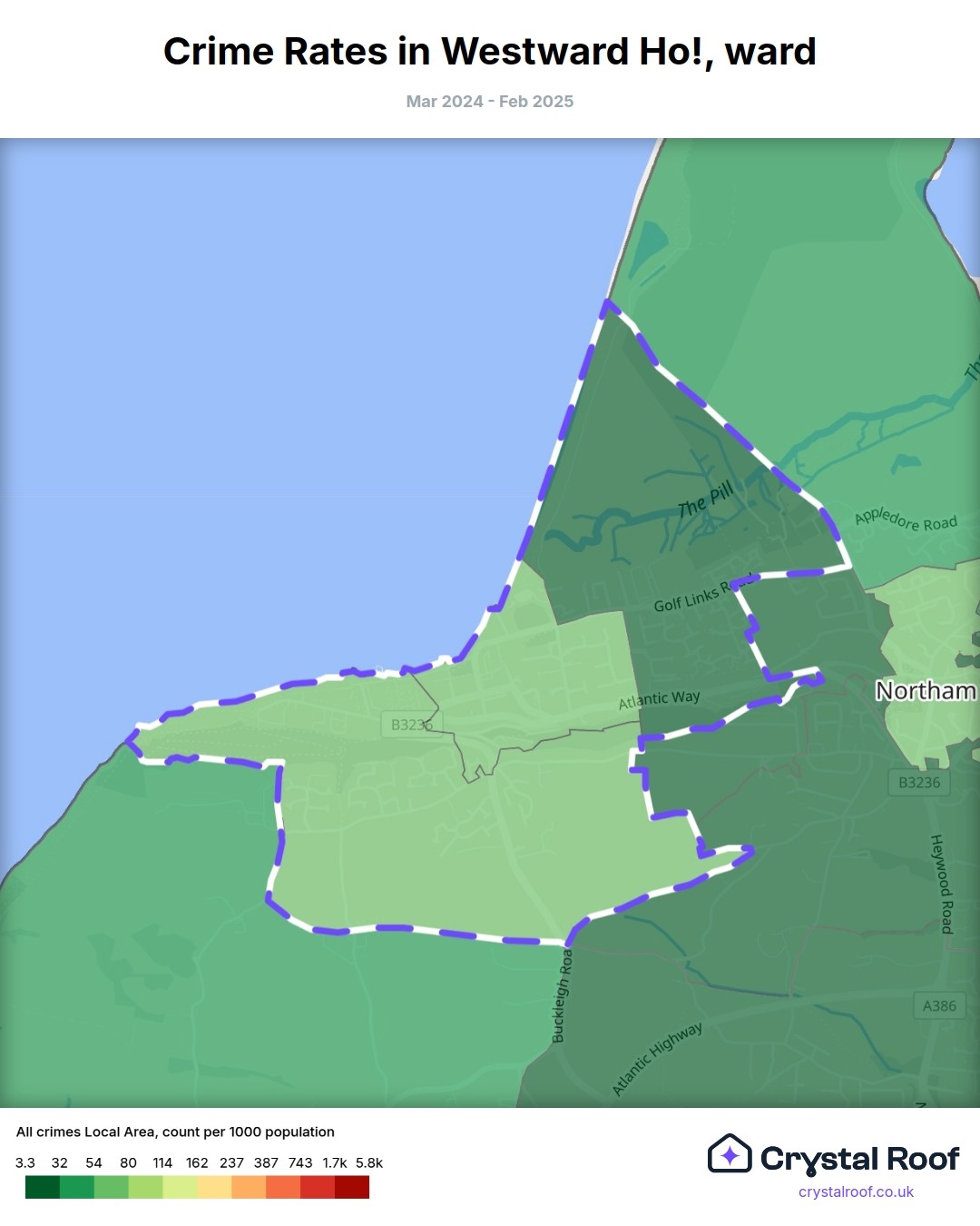 Westward Ho!, (ward) includes areas with the following crime ratings (see map):