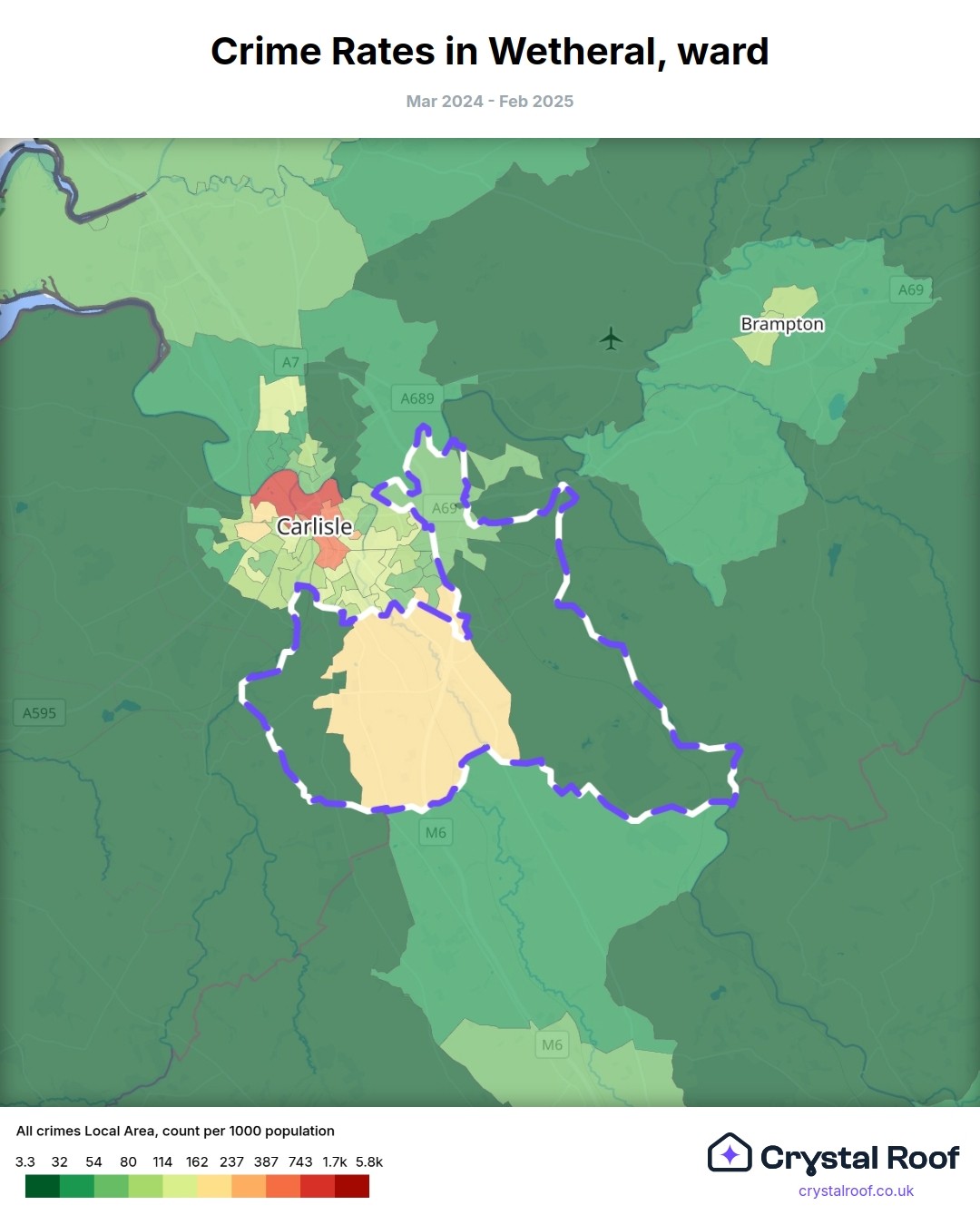 Wetheral, (ward) includes areas with the following crime ratings (see map):