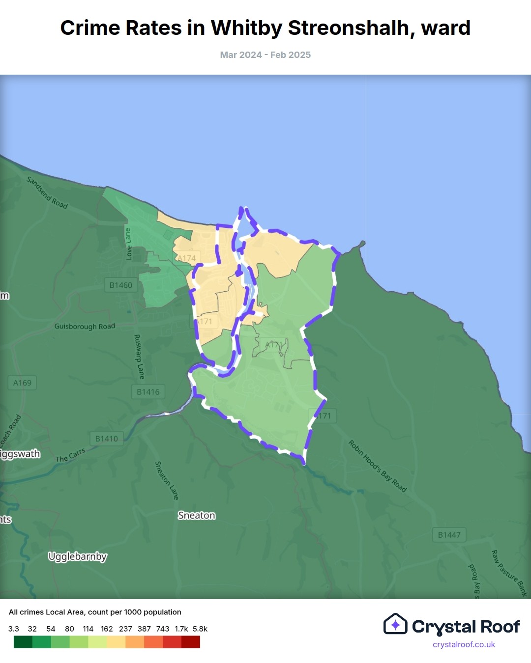 Whitby Streonshalh, (ward) includes areas with the following crime ratings (see map):
