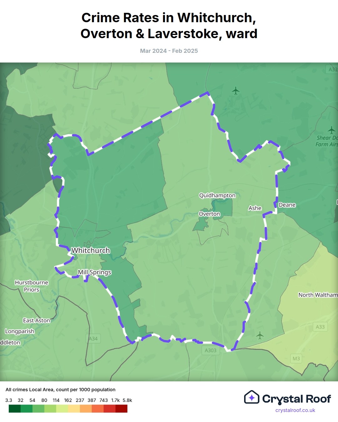 Whitchurch, Overton & Laverstoke, (ward) includes areas with the following crime ratings (see map):