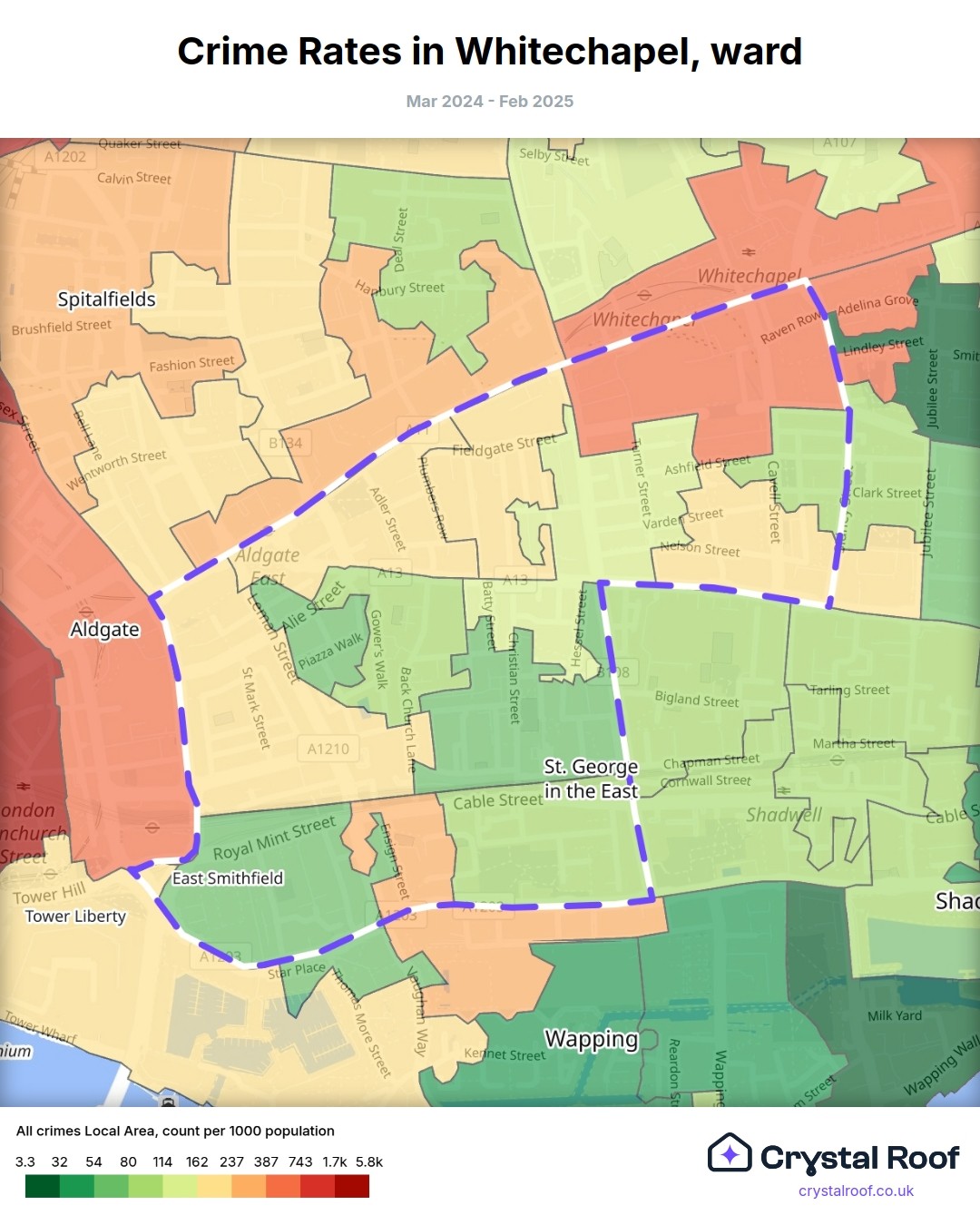 Whitechapel, (ward) includes areas with the following crime ratings (see map):
