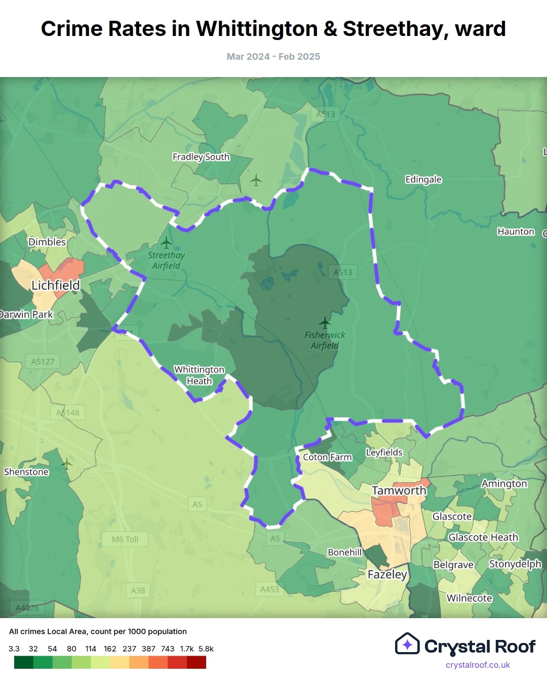 Whittington & Streethay, (ward) includes areas with the following crime ratings (see map):
