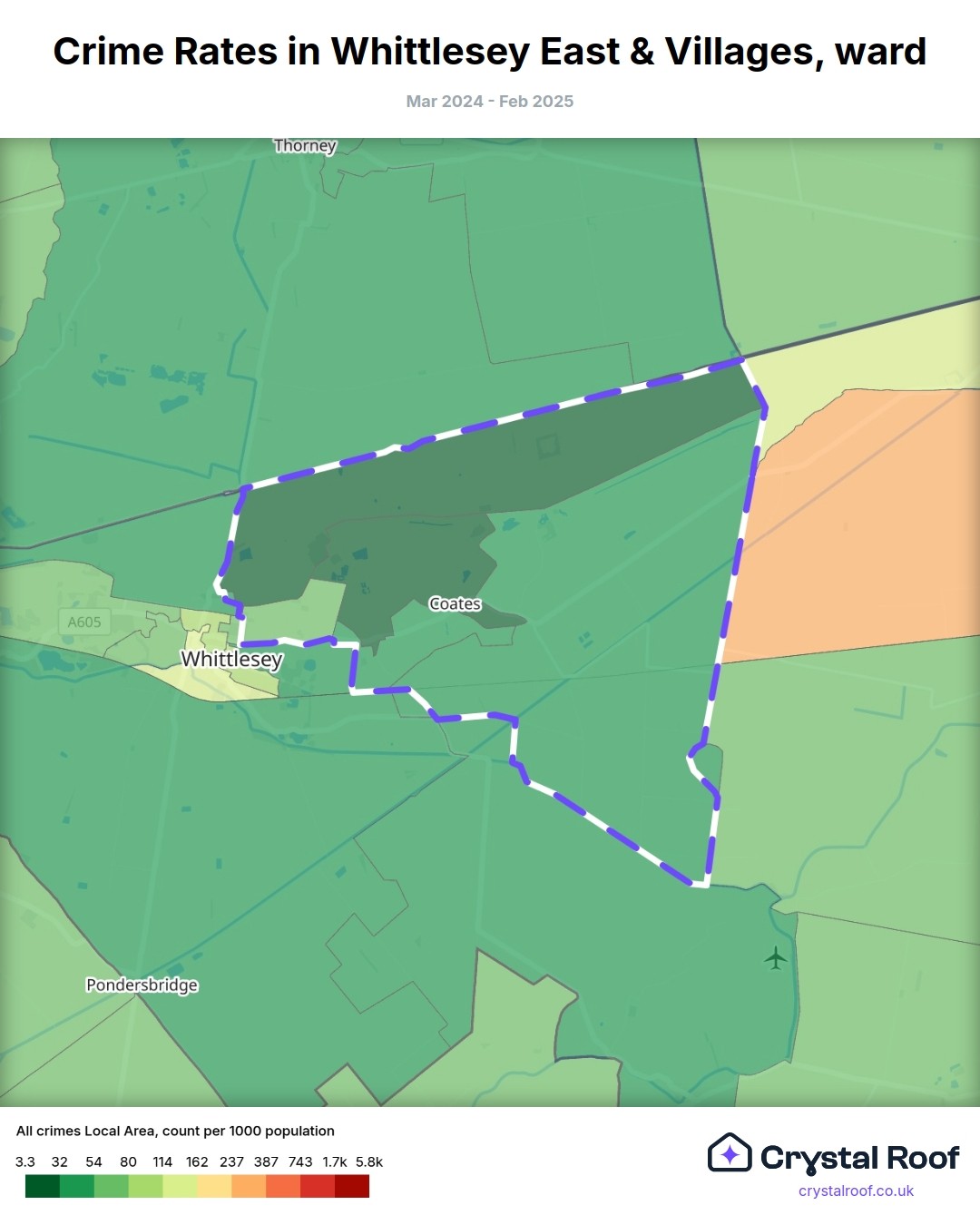 Whittlesey East & Villages, (ward) includes areas with the following crime ratings (see map):