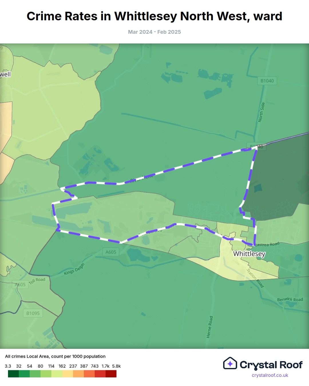 Whittlesey North West, (ward) includes areas with the following crime ratings (see map):