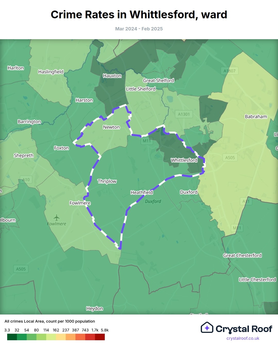 Whittlesford, (ward) includes areas with the following crime ratings (see map):