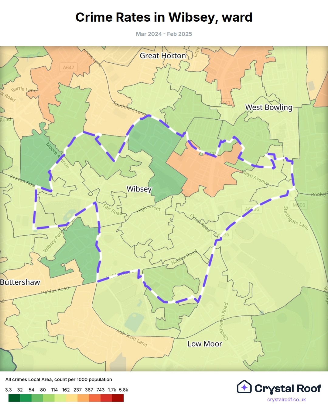 Wibsey, (ward) includes areas with the following crime ratings (see map):