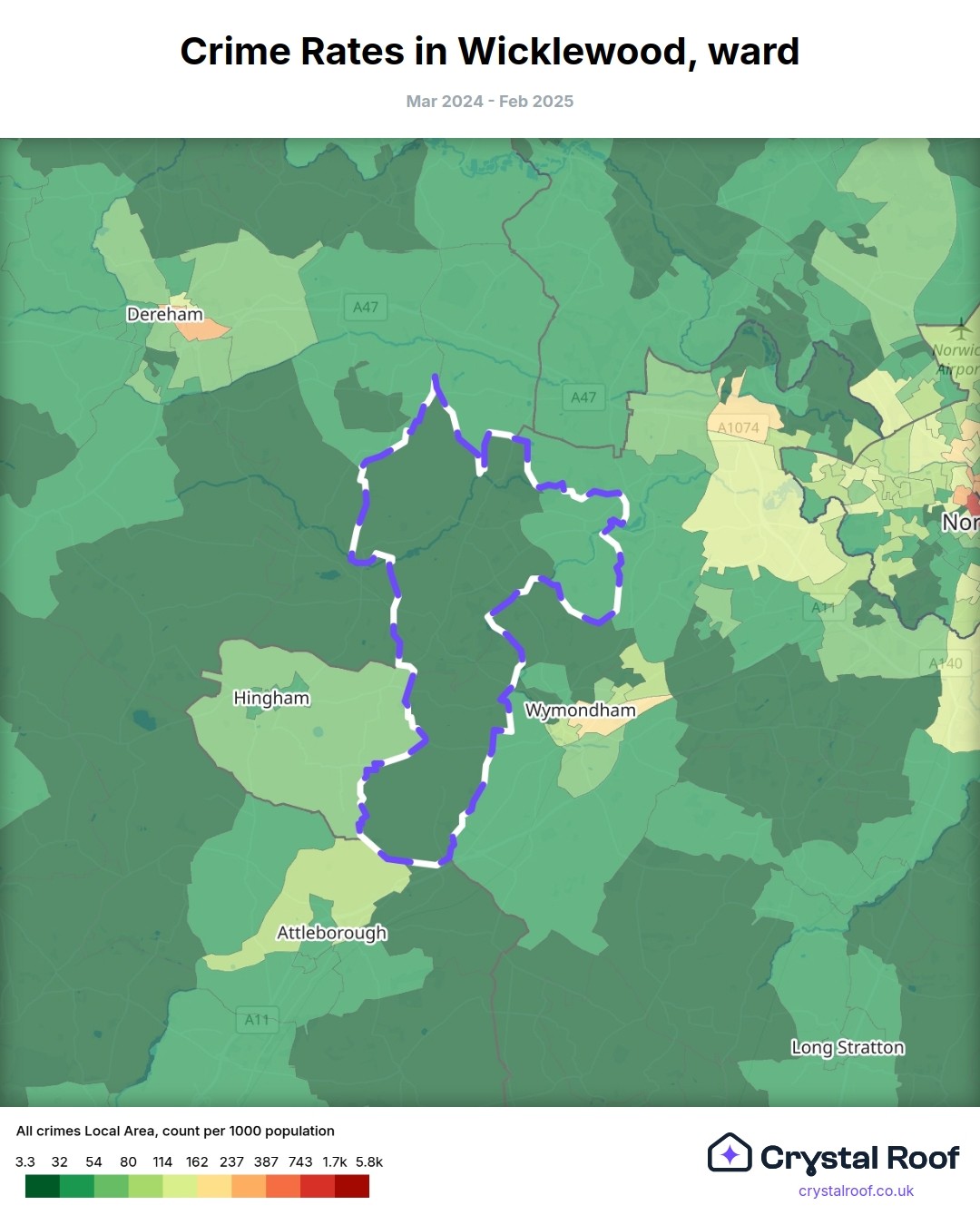 Wicklewood, (ward) includes areas with the following crime ratings (see map):