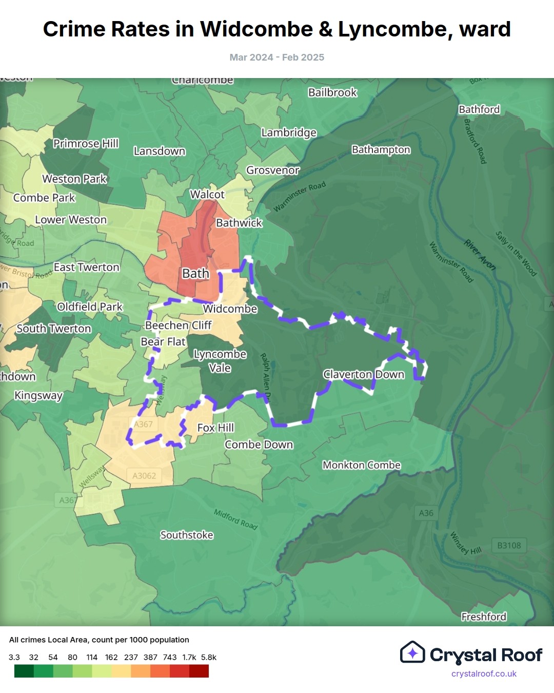 Widcombe & Lyncombe, (ward) includes areas with the following crime ratings (see map):