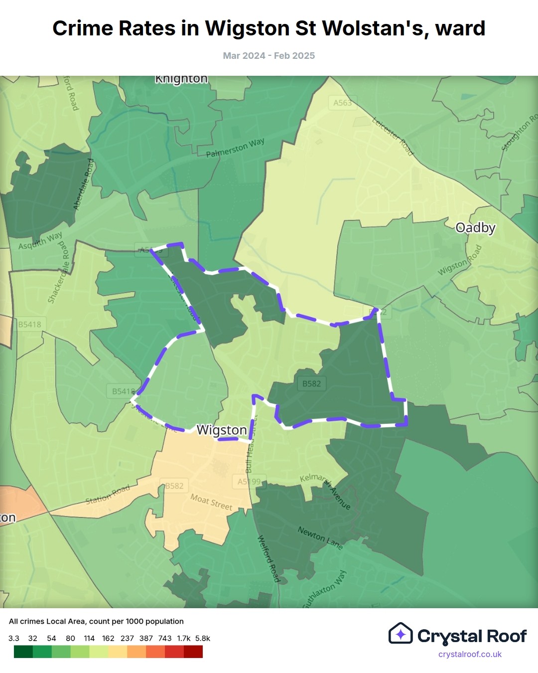 Wigston St Wolstan's, (ward) includes areas with the following crime ratings (see map):