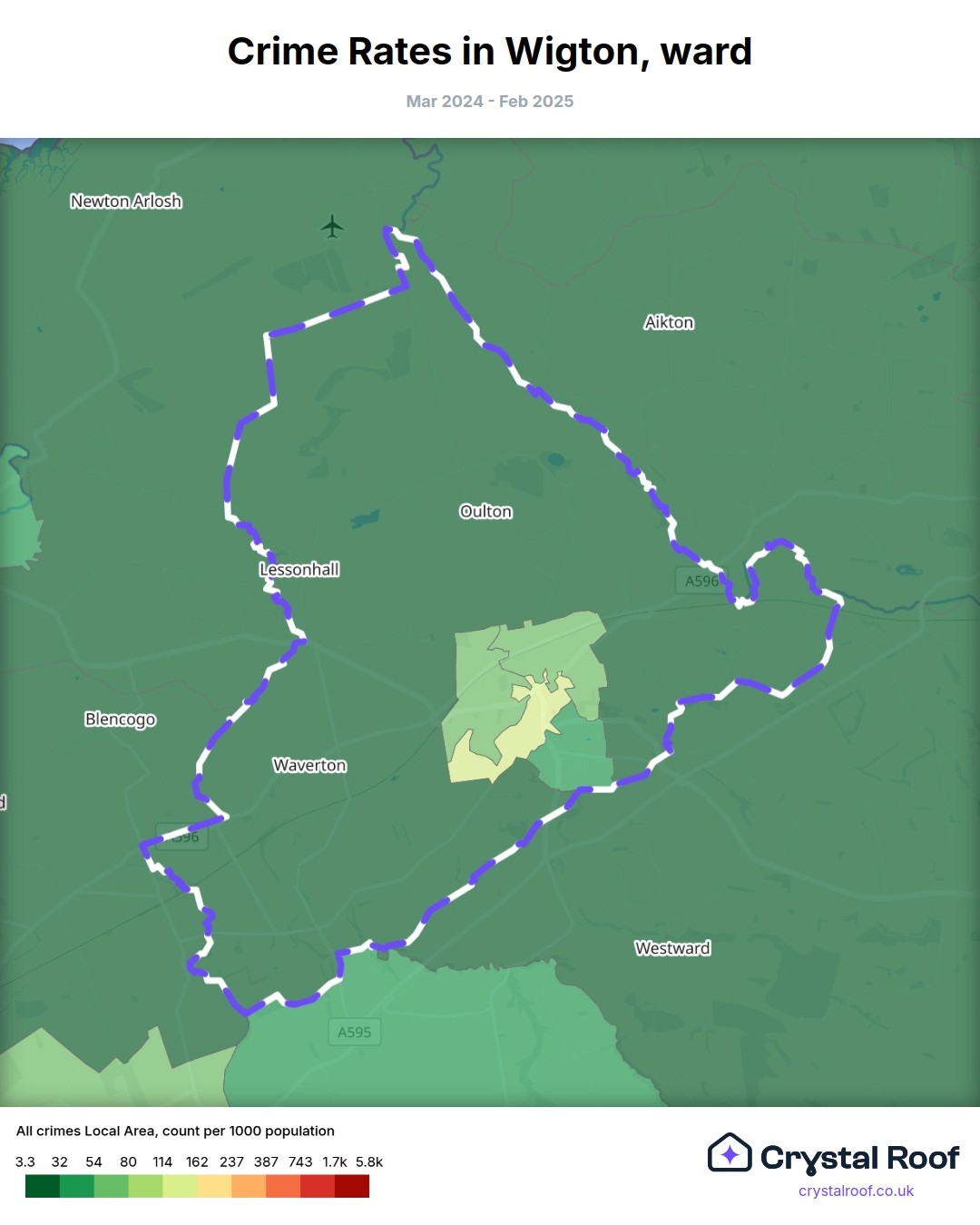Wigton, (ward) includes areas with the following crime ratings (see map):