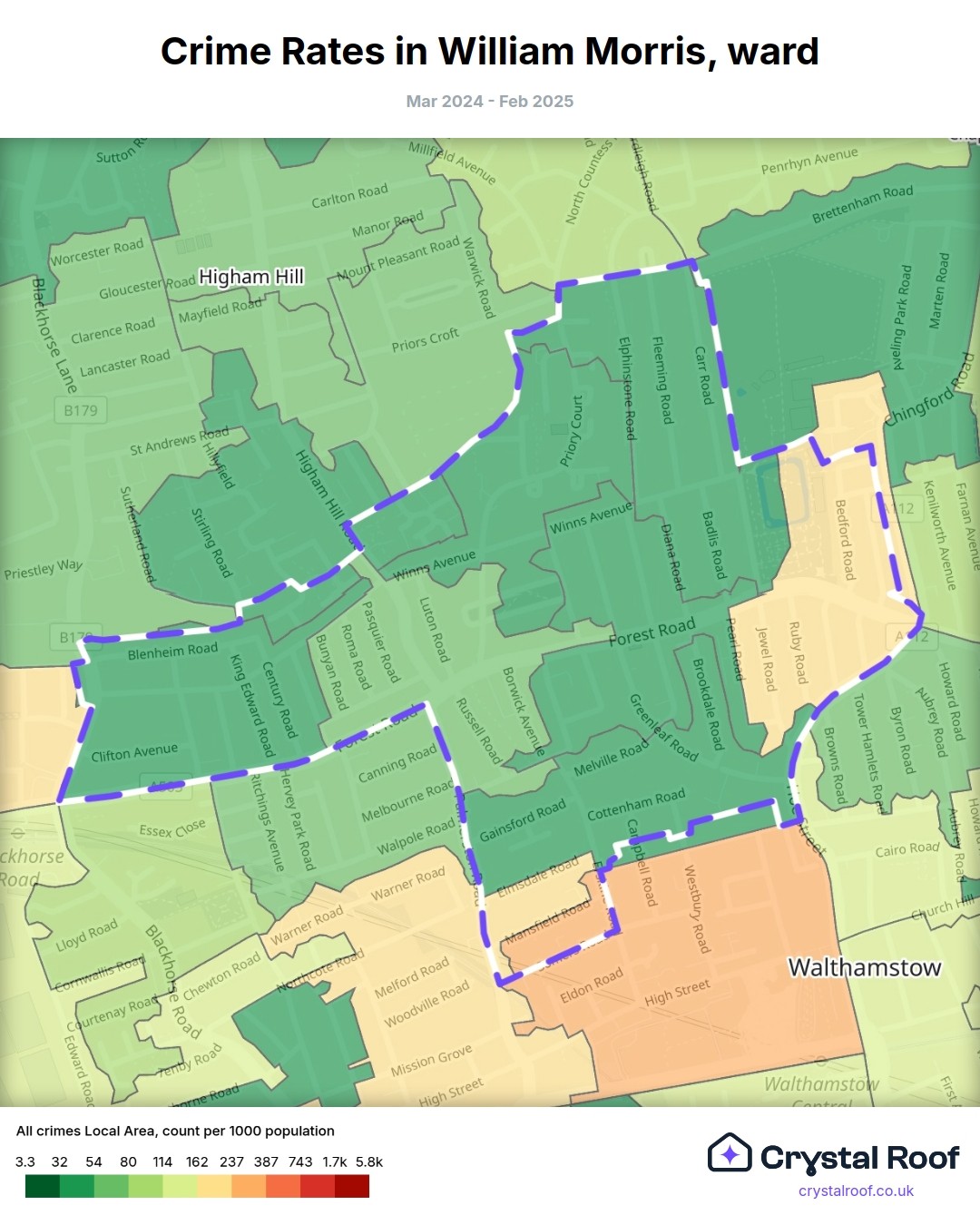 William Morris, (ward) includes areas with the following crime ratings (see map):