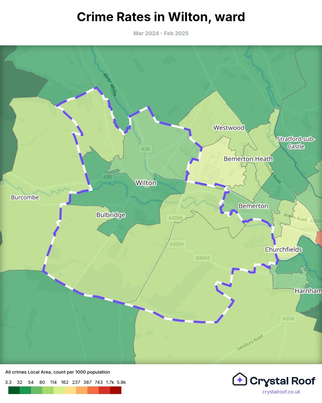 Wilton, (ward) includes areas with the following crime ratings (see map):