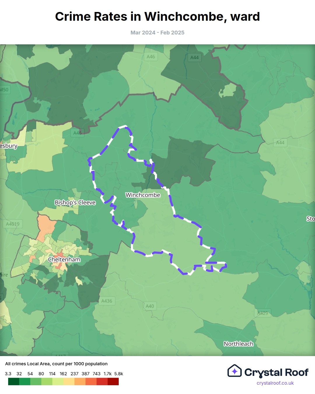 Winchcombe, (ward) includes areas with the following crime ratings (see map):