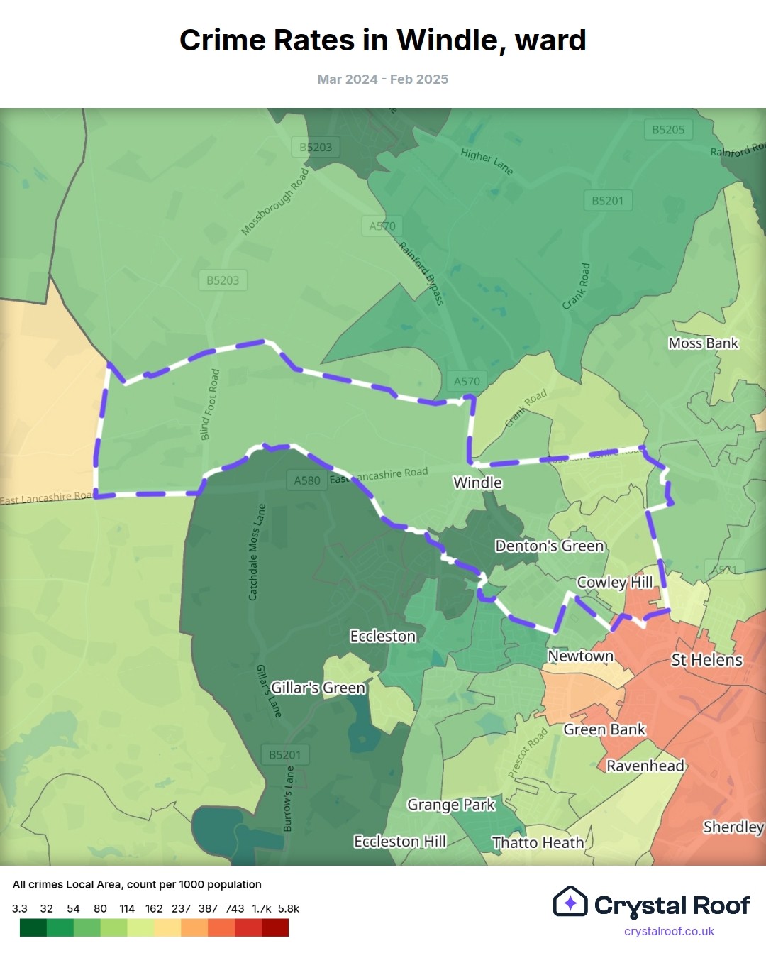 Windle, (ward) includes areas with the following crime ratings (see map):