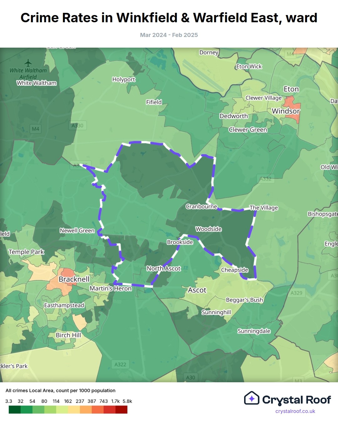 Winkfield & Warfield East, (ward) includes areas with the following crime ratings (see map):