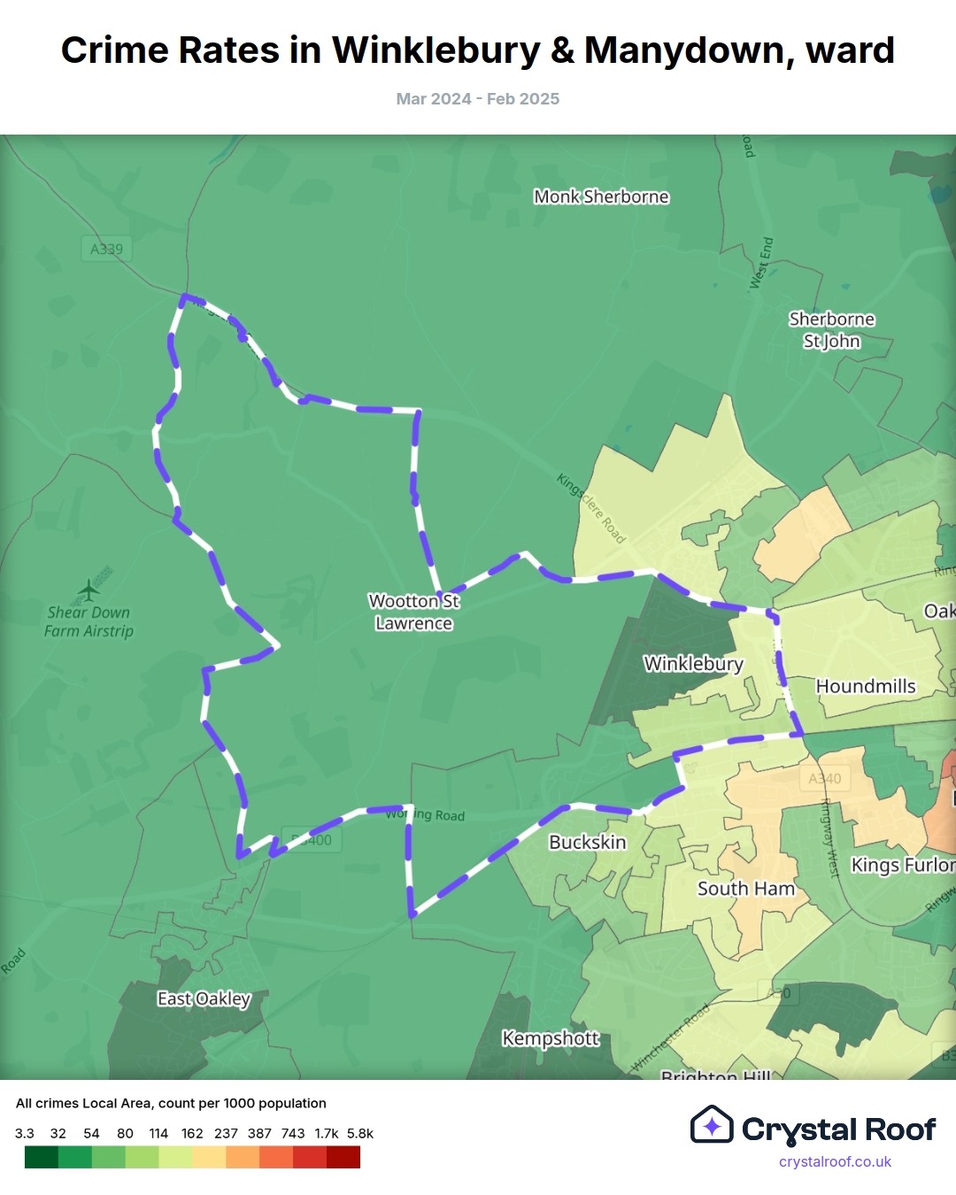 Winklebury & Manydown, (ward) includes areas with the following crime ratings (see map):