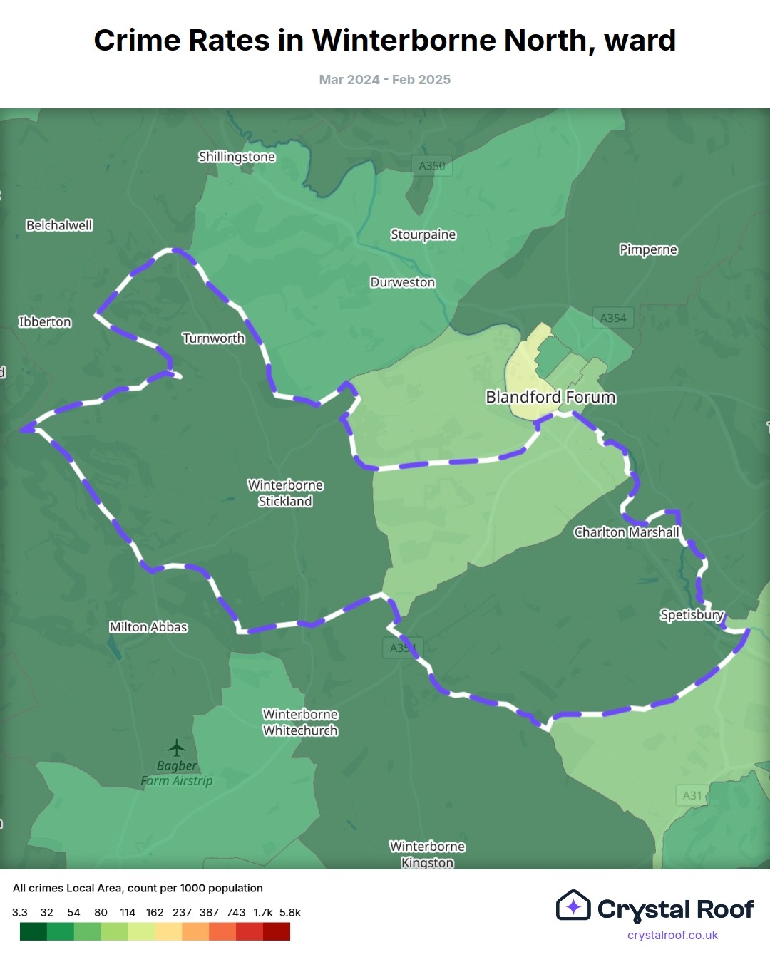 Winterborne North, (ward) includes areas with the following crime ratings (see map):