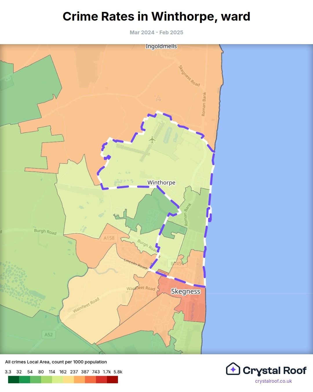 Winthorpe, (ward) includes areas with the following crime ratings (see map):