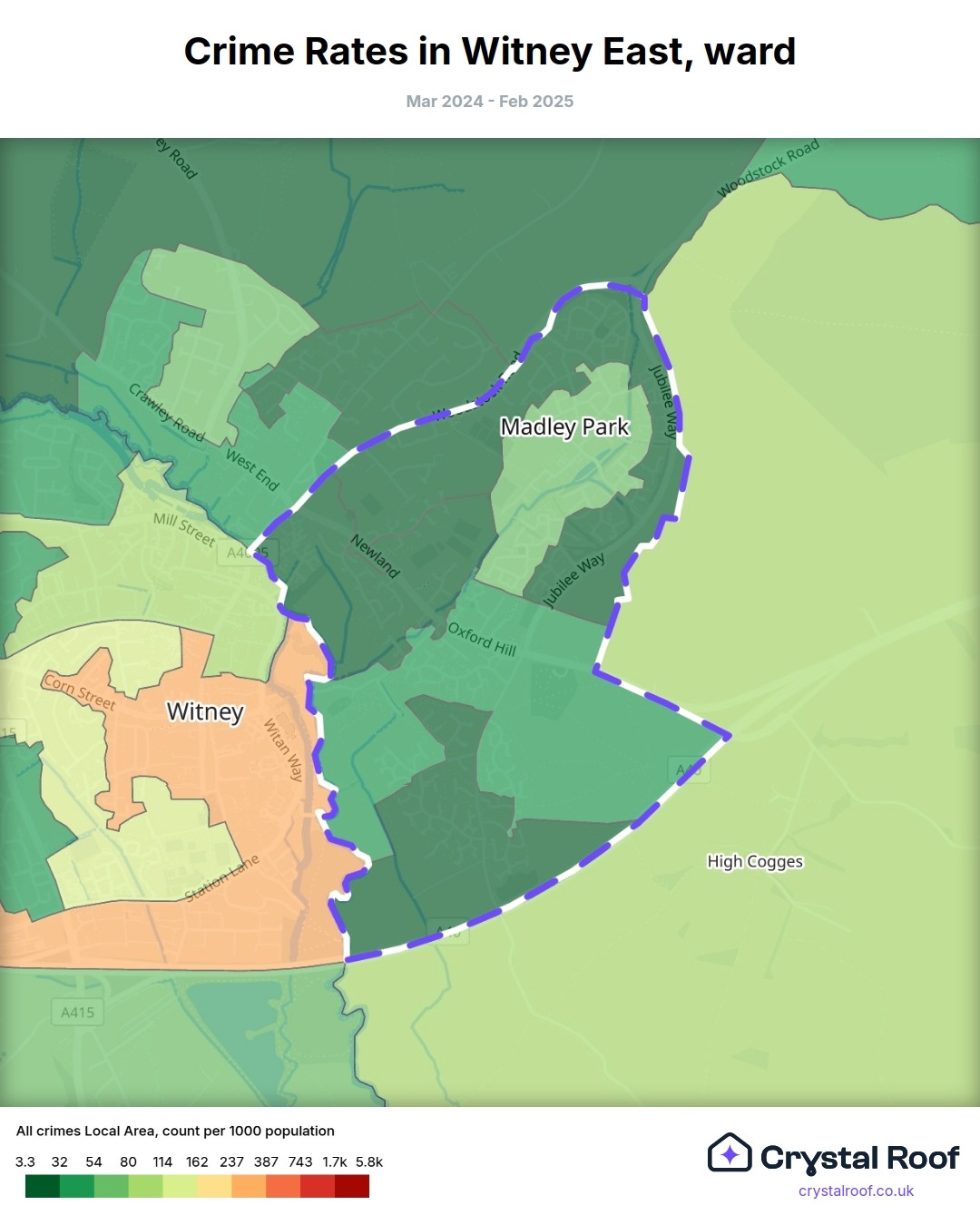 Witney East, (ward) includes areas with the following crime ratings (see map):