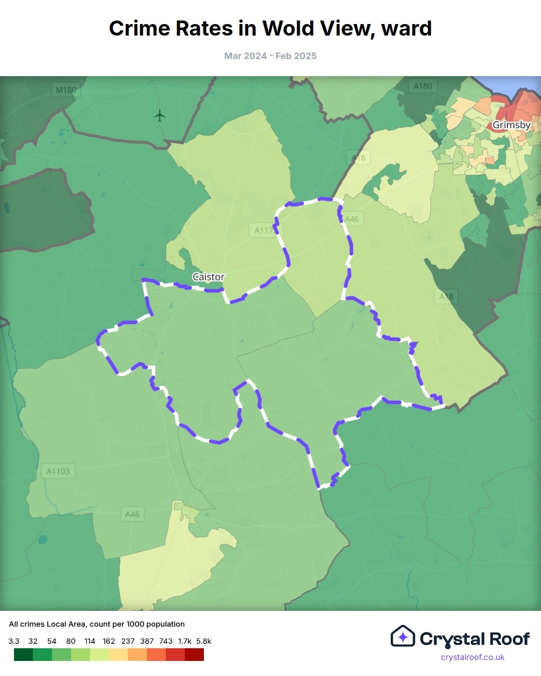 Wold View, (ward) includes areas with the following crime ratings (see map):