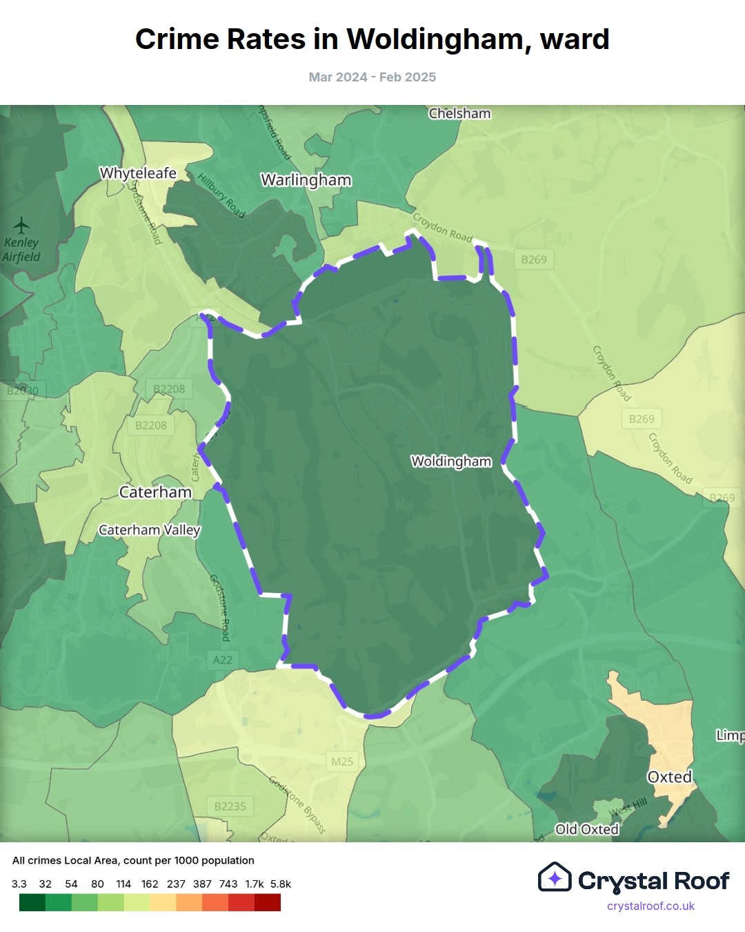 Woldingham, (ward) includes areas with the following crime ratings (see map):