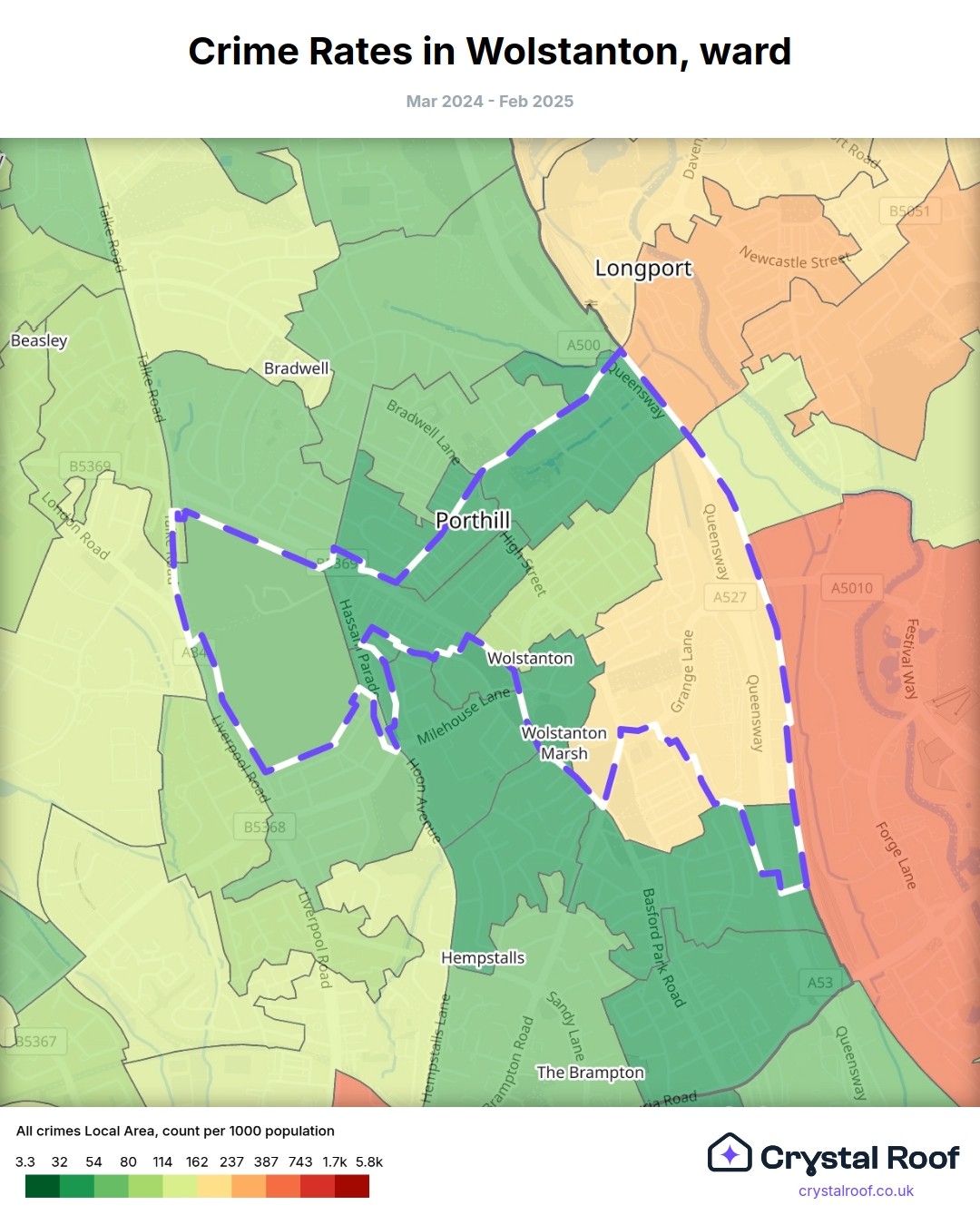 Wolstanton, (ward) includes areas with the following crime ratings (see map):