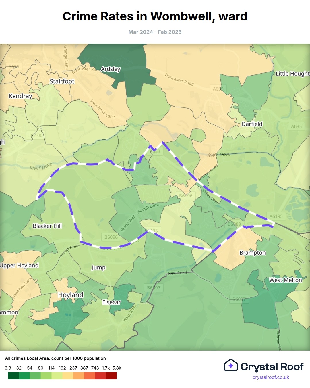 Wombwell, (ward) includes areas with the following crime ratings (see map):