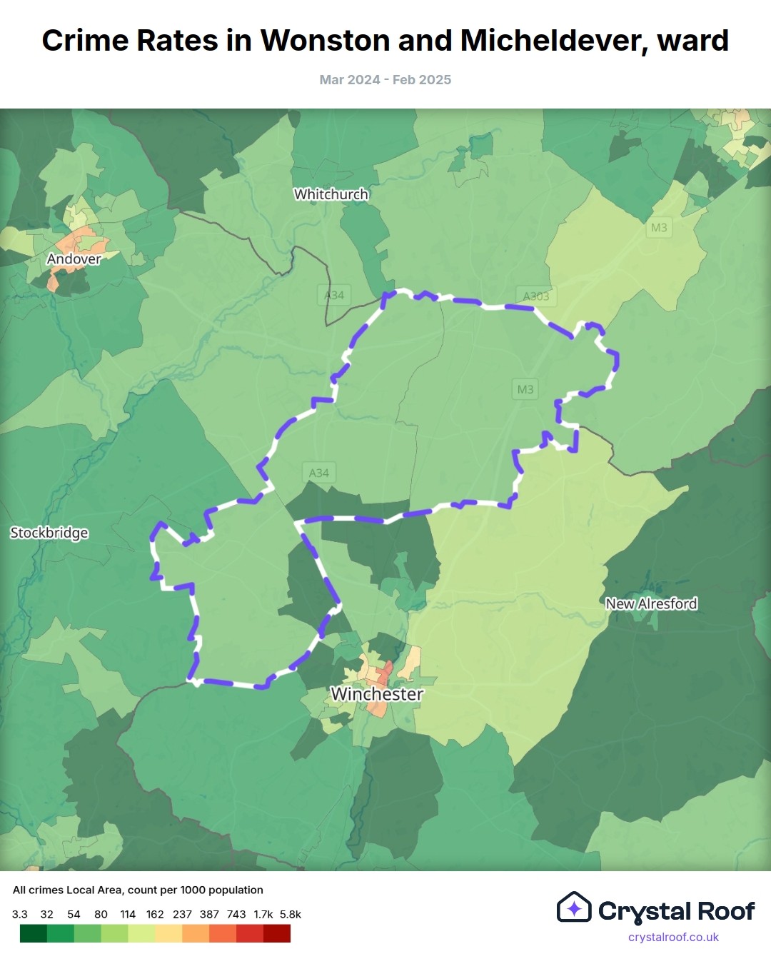 Wonston and Micheldever, (ward) includes areas with the following crime ratings (see map):