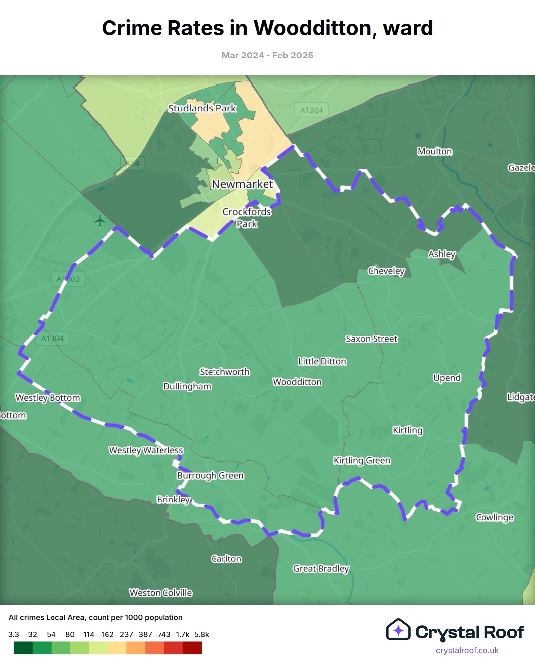 Woodditton, (ward) includes areas with the following crime ratings (see map):
