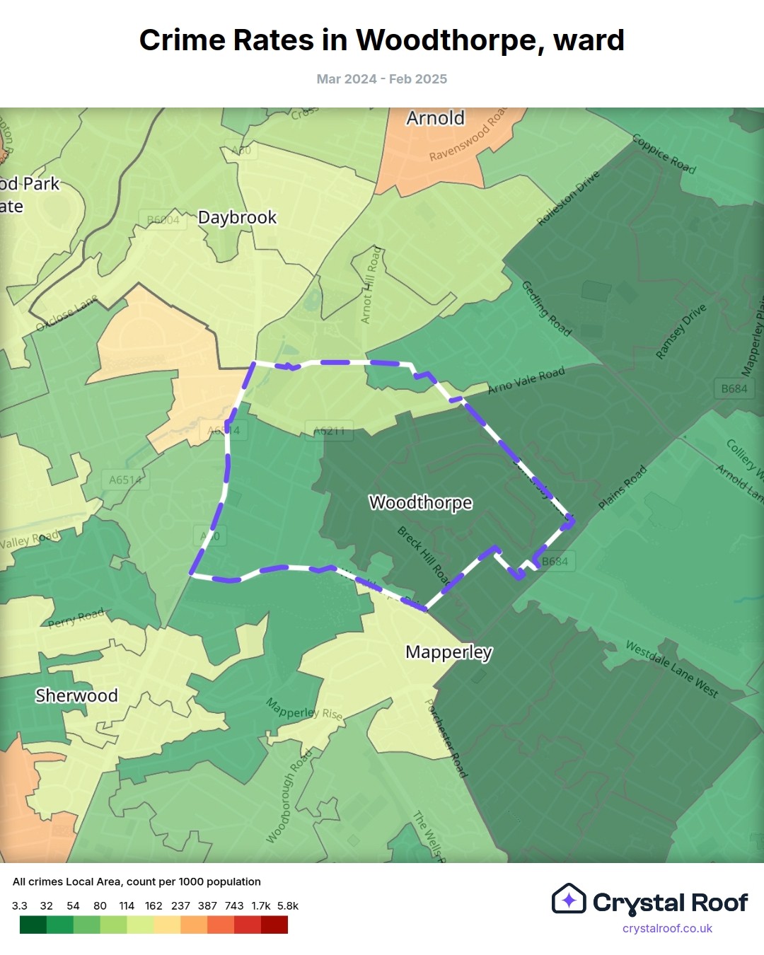 Woodthorpe, (ward) includes areas with the following crime ratings (see map):