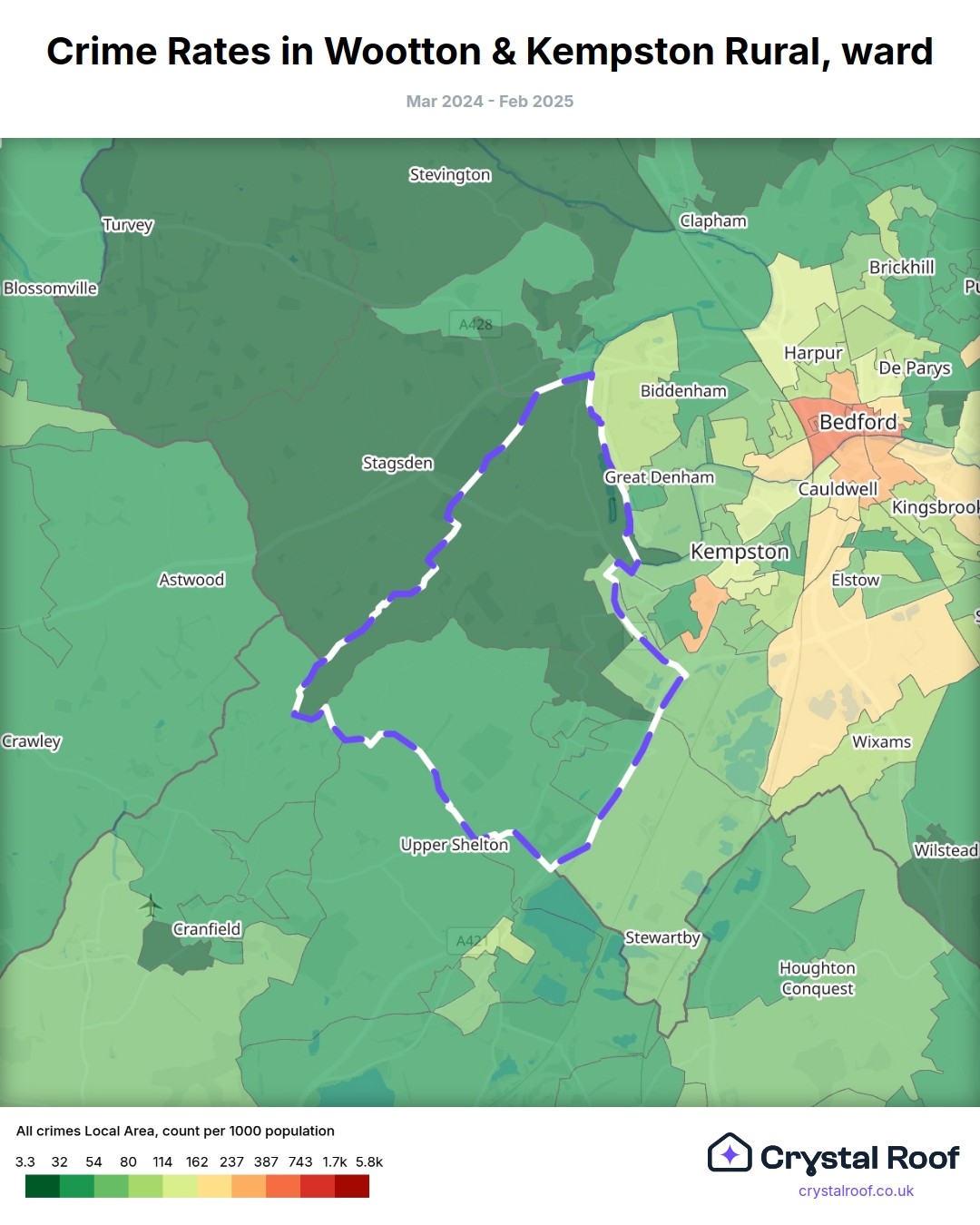Wootton & Kempston Rural, (ward) includes areas with the following crime ratings (see map):