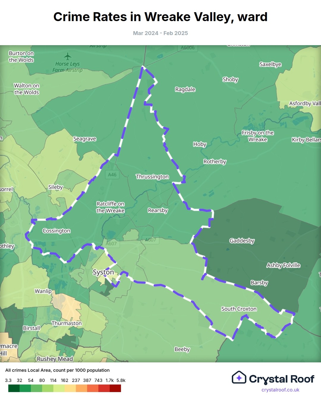 Wreake Valley, (ward) includes areas with the following crime ratings (see map):