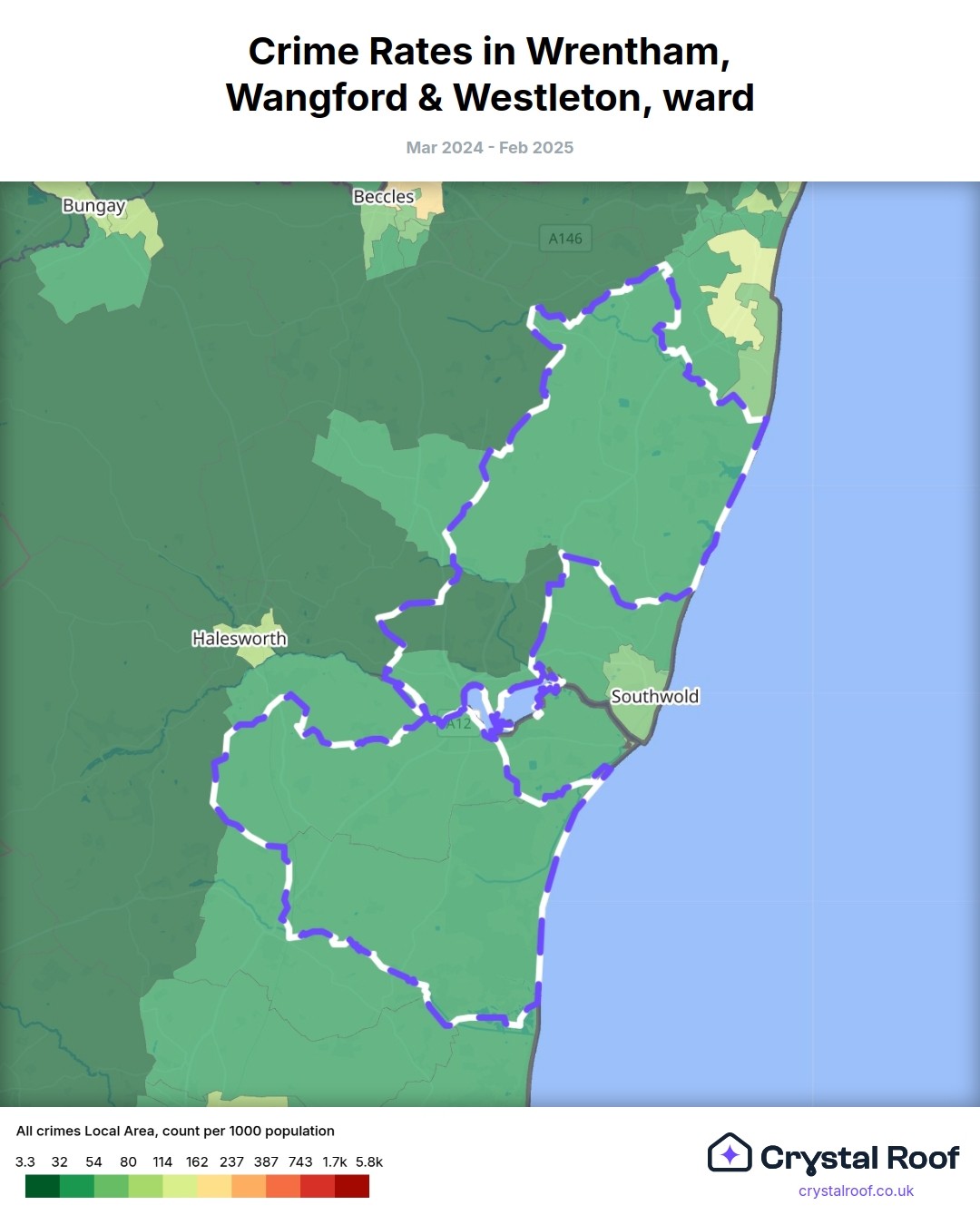 Wrentham, Wangford & Westleton, (ward) includes areas with the following crime ratings (see map):