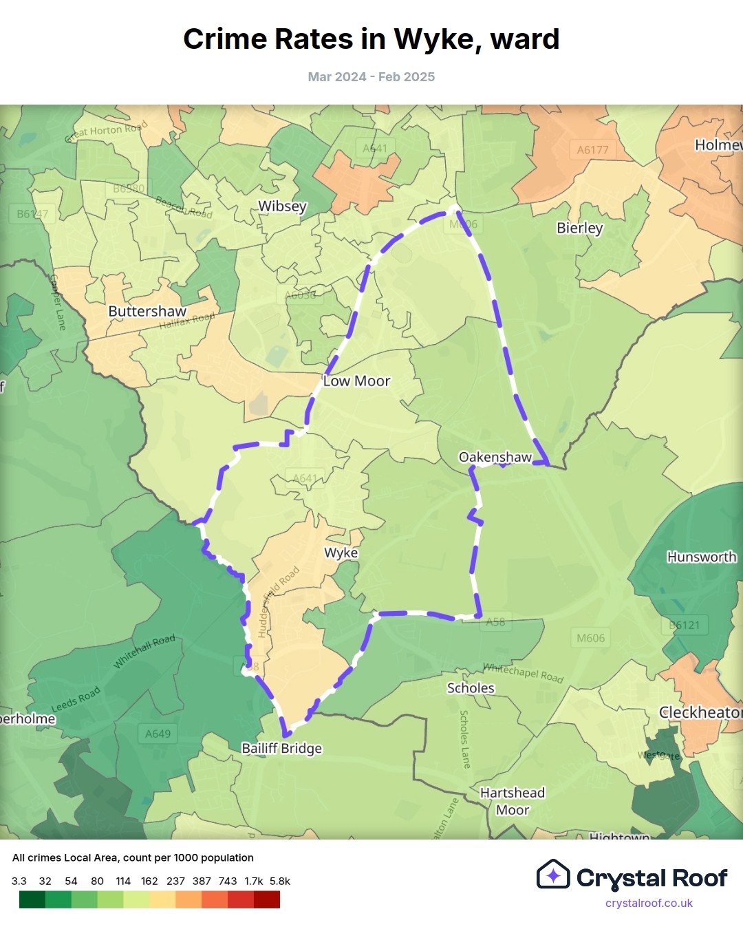 Wyke, (ward) includes areas with the following crime ratings (see map):