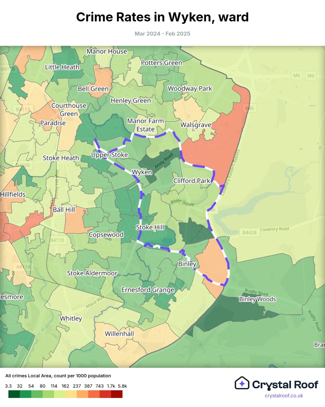 Wyken, (ward) includes areas with the following crime ratings (see map):