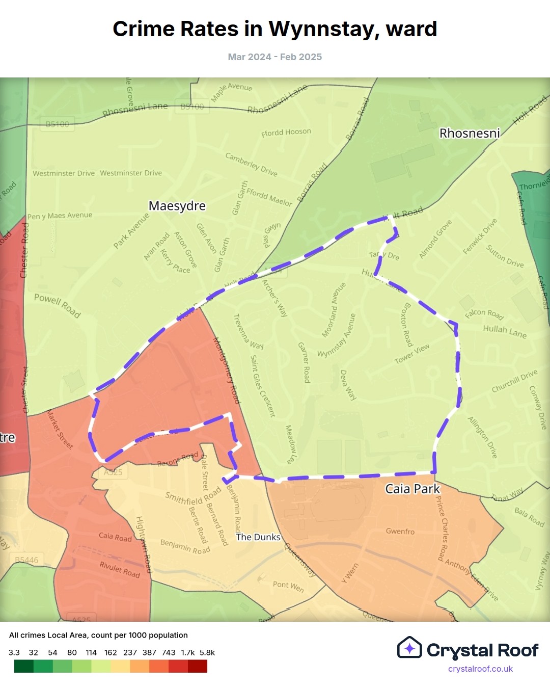 Wynnstay, (ward) includes areas with the following crime ratings (see map):