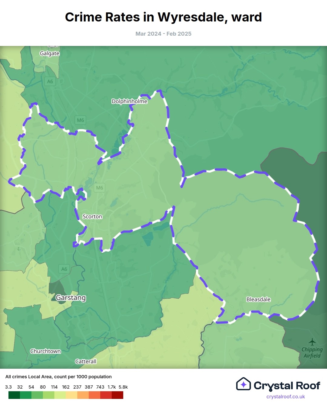 Wyresdale, (ward) includes areas with the following crime ratings (see map):