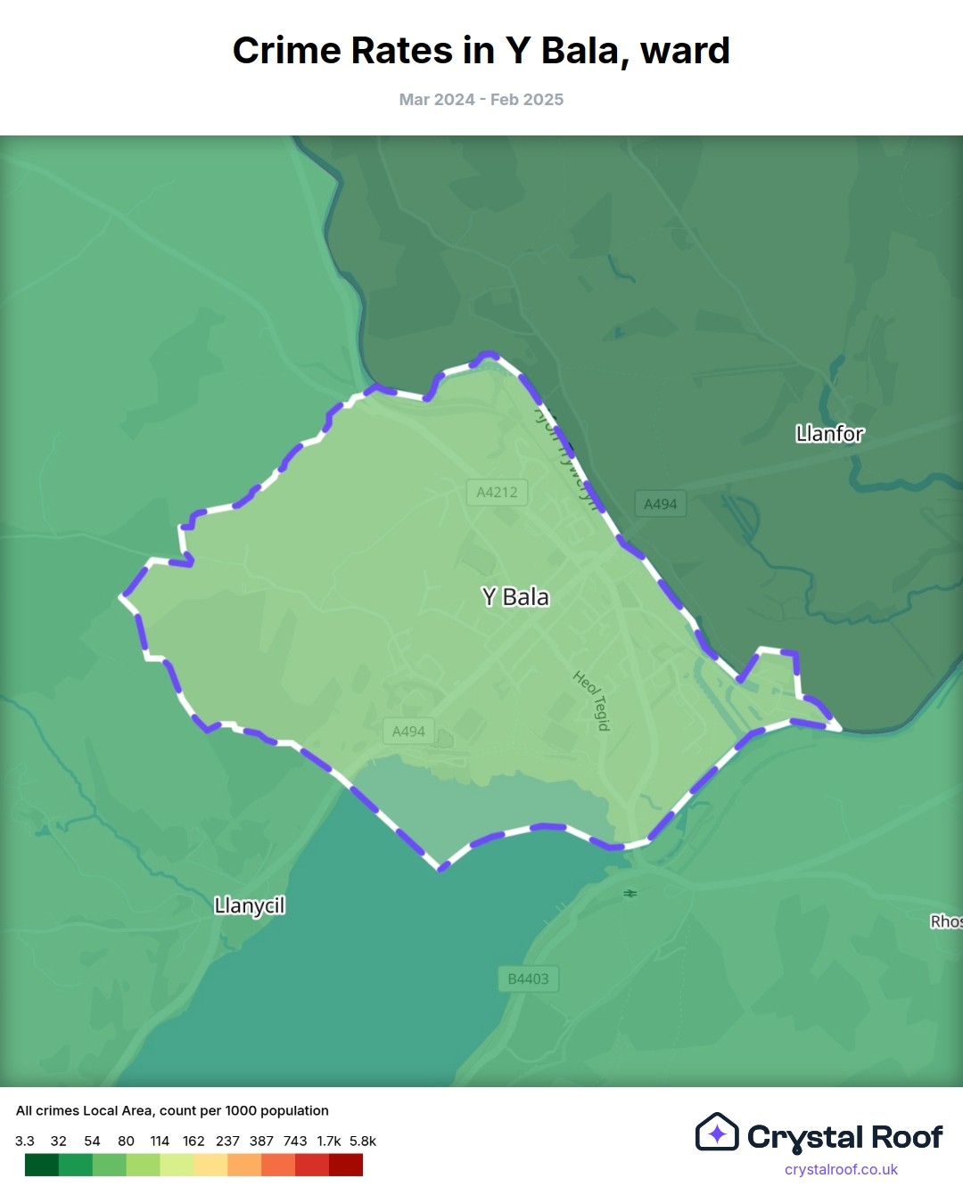 Y Bala, (ward) includes areas with the following crime ratings (see map):