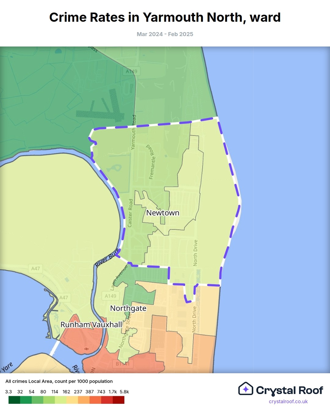 Yarmouth North, (ward) includes areas with the following crime ratings (see map):