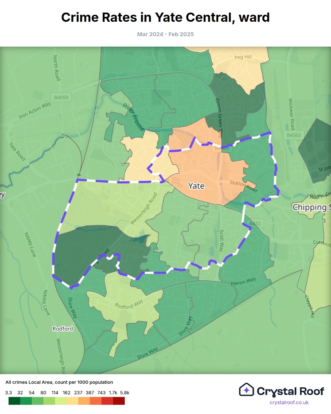 Yate Central, (ward) includes areas with the following crime ratings (see map):