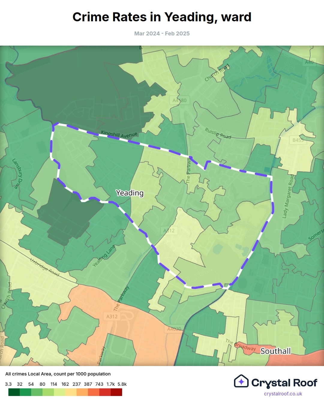 Yeading, (ward) includes areas with the following crime ratings (see map):