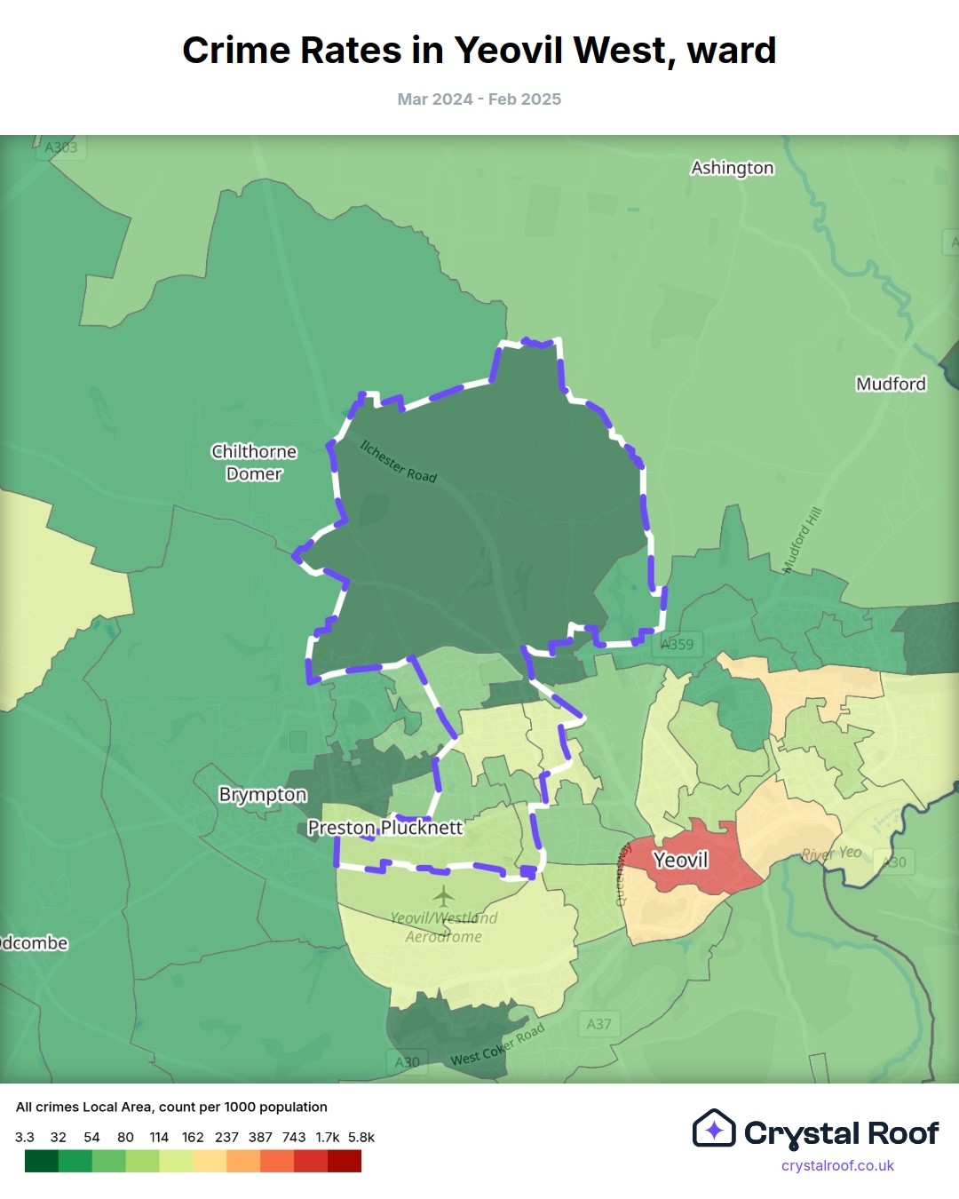 Yeovil West, (ward) includes areas with the following crime ratings (see map):