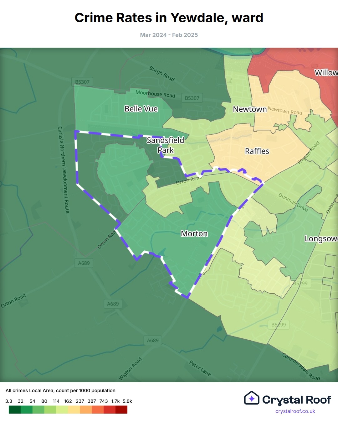 Yewdale, (ward) includes areas with the following crime ratings (see map):