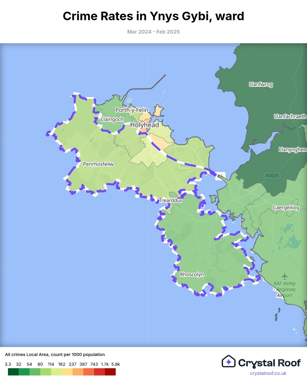 Ynys Gybi, (ward) includes areas with the following crime ratings (see map):