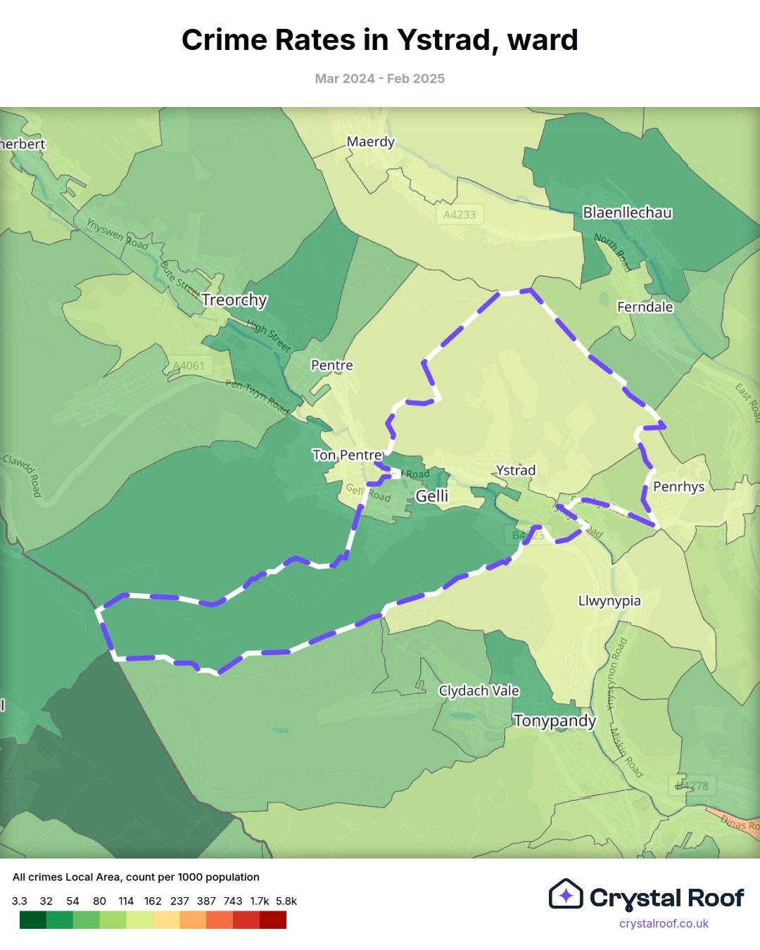 Ystrad, (ward) includes areas with the following crime ratings (see map):