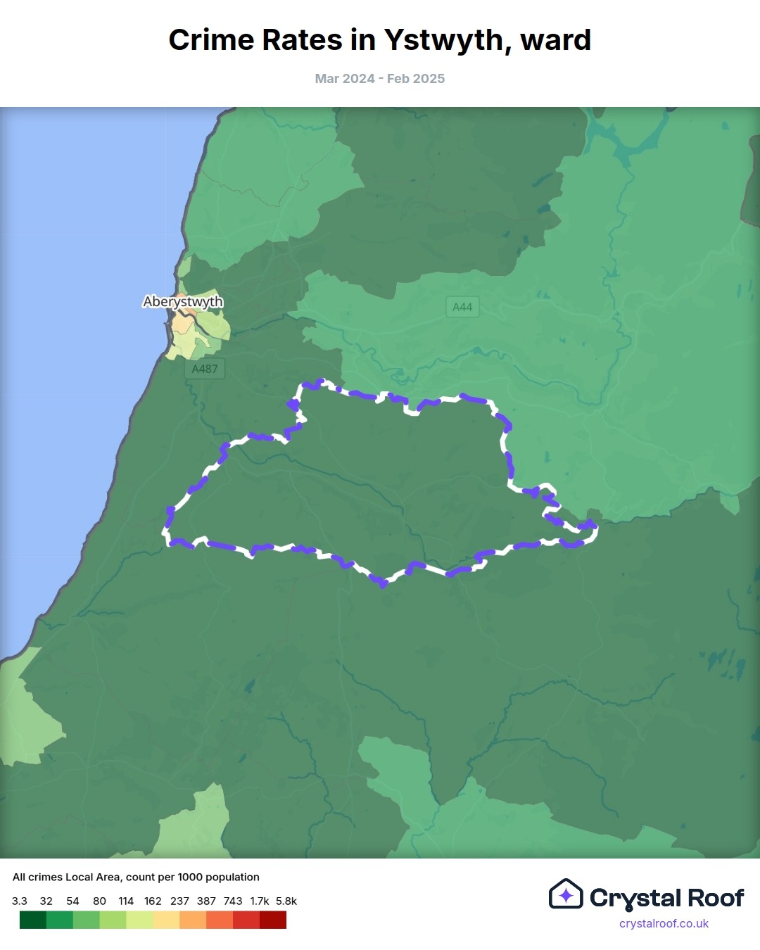 Ystwyth, (ward) includes areas with the following crime ratings (see map):
